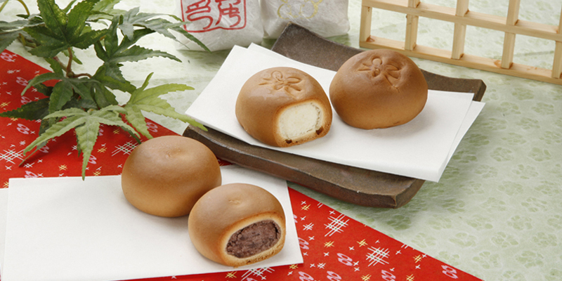 岡山県産の餅粉を使用し自社焼成した皮に、北海道産上質小豆を贅沢に使った餡