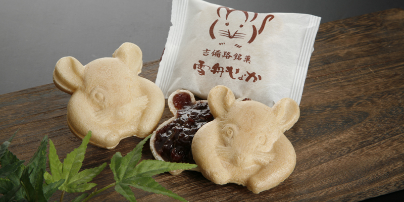 雪舟が少年時代に涙でねずみの絵を描いたという伝説に由来したねずみの形のかわいらしいもなかです。